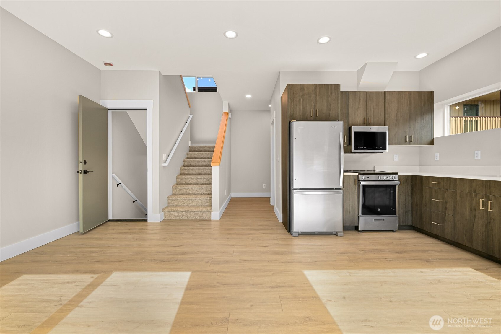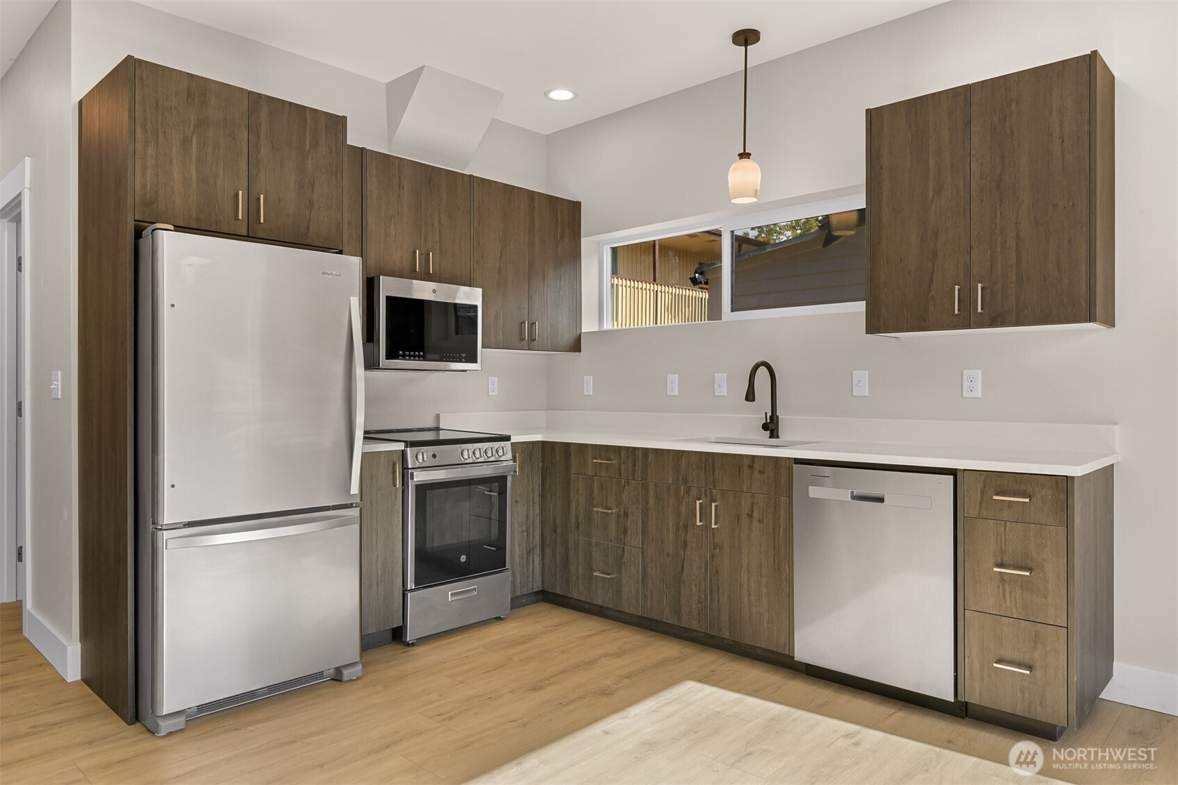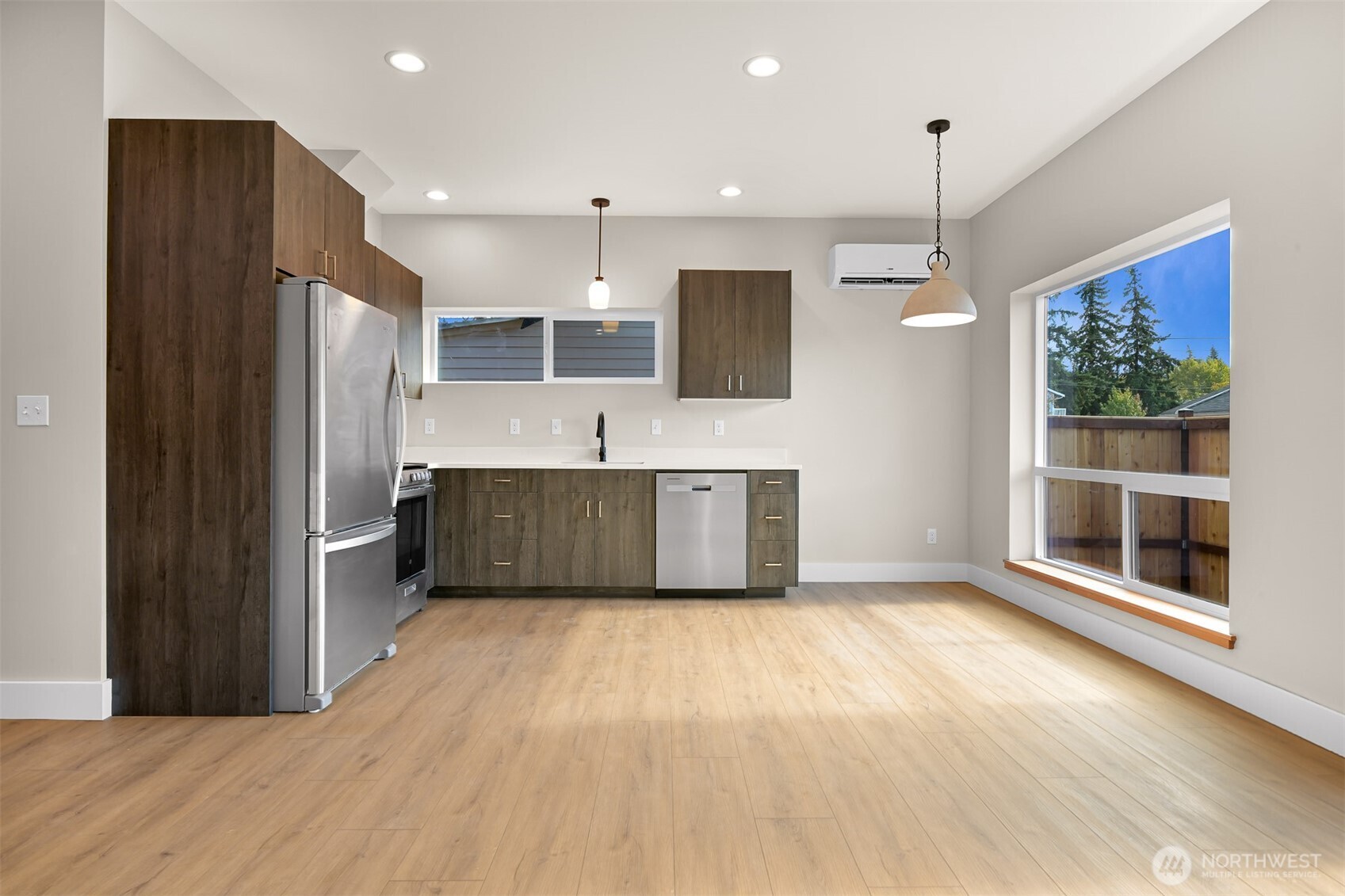 Welcome to a brand new construction townhome in Bellingham! 984 square feet of living space w/ 3 bedrooms, 1.5 bathrooms, + addl 480 SF + spacious flex area downstairs - great for storage, workout equipment, etc. Kitchen has quartz countertops, new appliances (option for extended warranty) and locally-made cabinetry. Built to current energy code with high-efficiency mini split heating & air conditioning. Double one-hour fire walls between this & neighboring unit. Located on a quiet street with off-street parking & ~9x20' fully fenced yard space. Roosevelt Park is 1 min away, just off the end of the alley! An easy walk/bike to Barkley Village, Trader Joe's, & Whatcom Falls Park - come live in the heart of Bellingham!