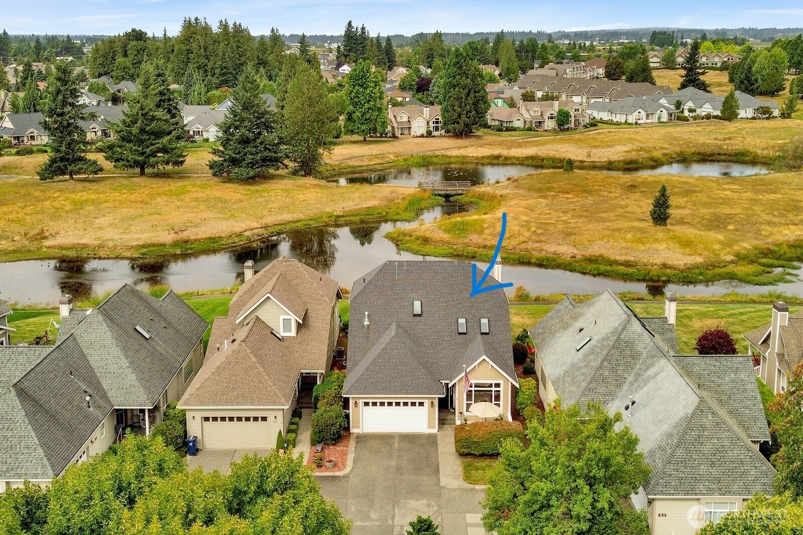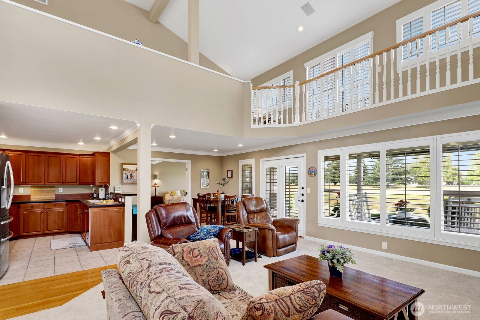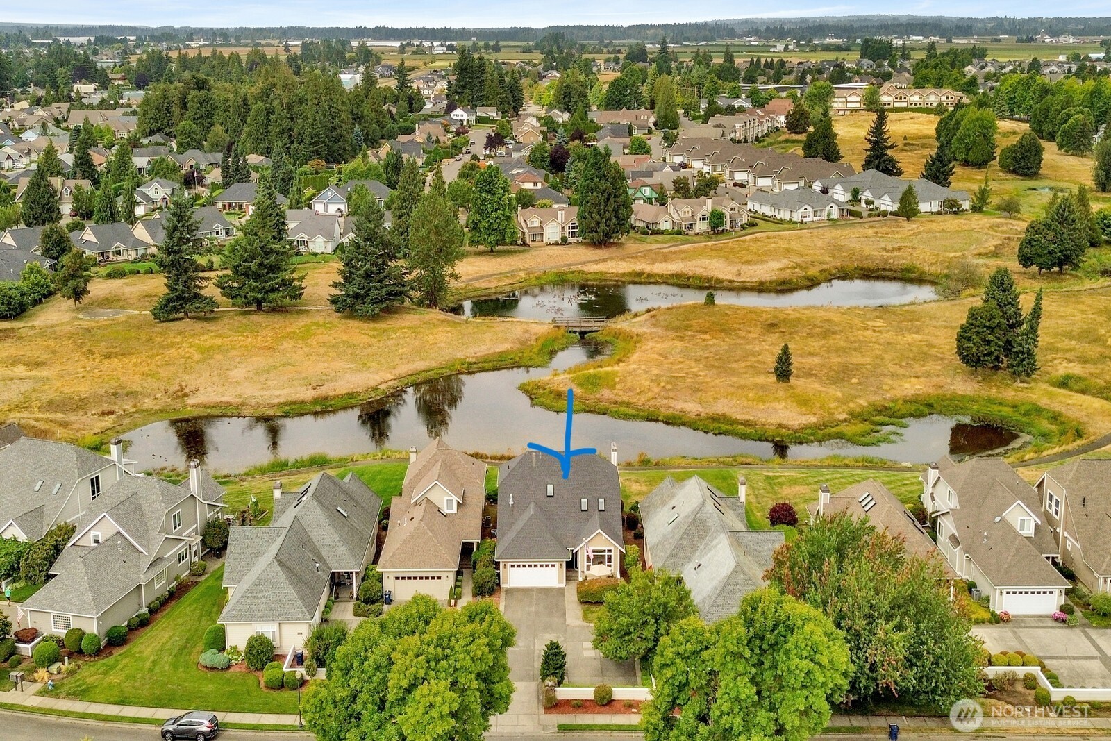Step into timeless elegance in this lovely home, perfectly situated in Homestead. A spacious Gathering Room offers a grand curved staircase serving as a striking focal point, leading to the upper-level sitting area with wet bar & upper lanai with views! 2 bedrooms & full bath are also located here. The Great Rm style offers multiple options for furniture arranging to suite your lifestyle. Enjoy serene pond views throughout, with a gas fireplace & access to a covered Trex deck-perfect for relaxing or entertaining year round. The main floor primary offers a luxurious retreat, with private access to the covered deck & featuring a spa like en suite with oversized walk-in shower w/2 heads & walk-in closet. A true gem in a picturesque setting.