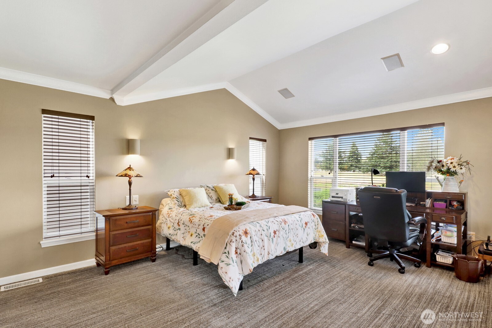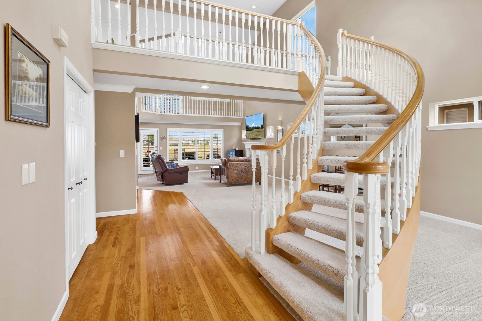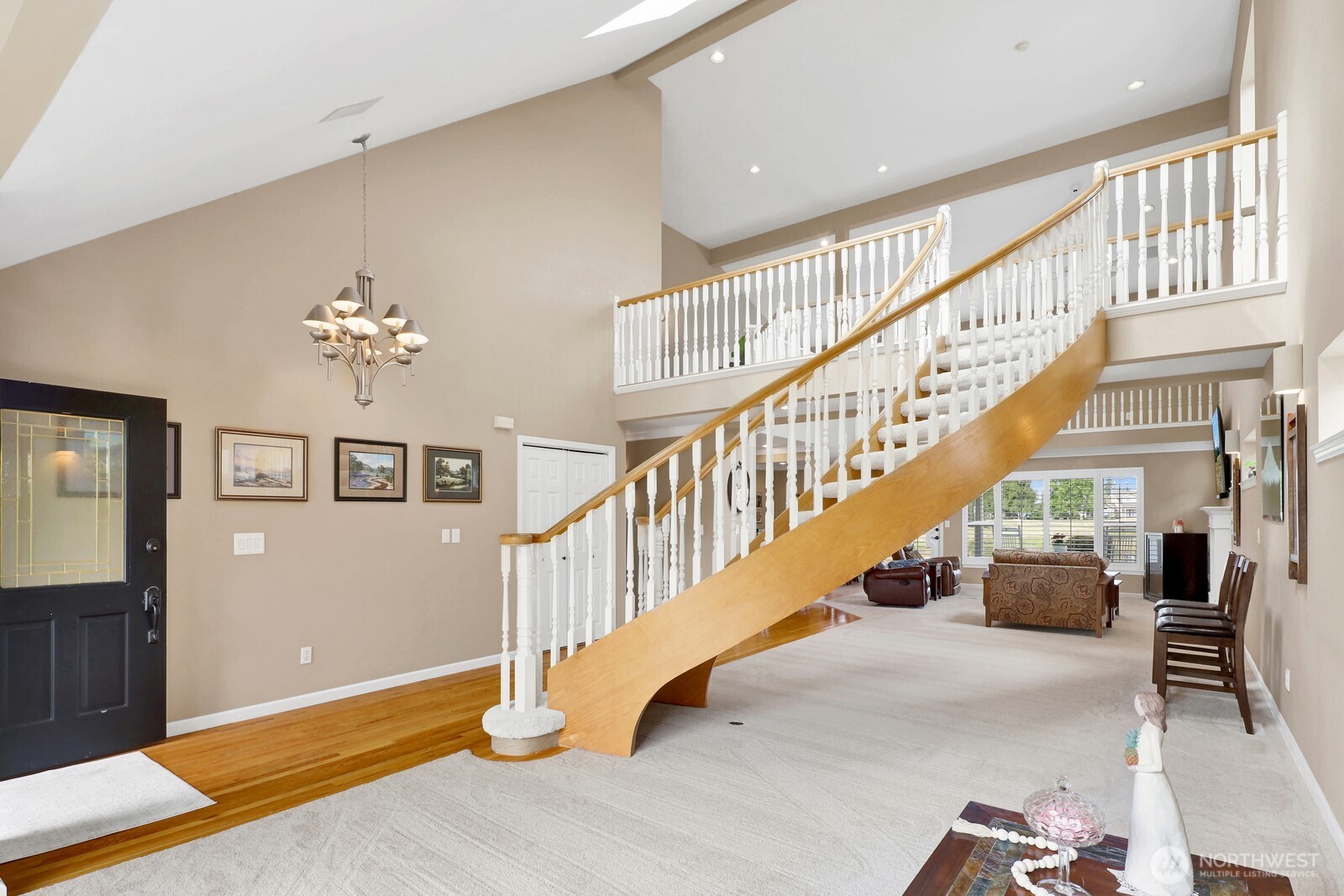 Step into timeless elegance in this lovely home, perfectly situated in Homestead. A spacious Gathering Room offers a grand curved staircase serving as a striking focal point, leading to the upper-level sitting area with wet bar & upper lanai with views! 2 bedrooms & full bath are also located here. The Great Rm style offers multiple options for furniture arranging to suite your lifestyle. Enjoy serene pond views throughout, with a gas fireplace & access to a covered Trex deck-perfect for relaxing or entertaining year round. The main floor primary offers a luxurious retreat, with private access to the covered deck & featuring a spa like en suite with oversized walk-in shower w/2 heads & walk-in closet. A true gem in a picturesque setting.